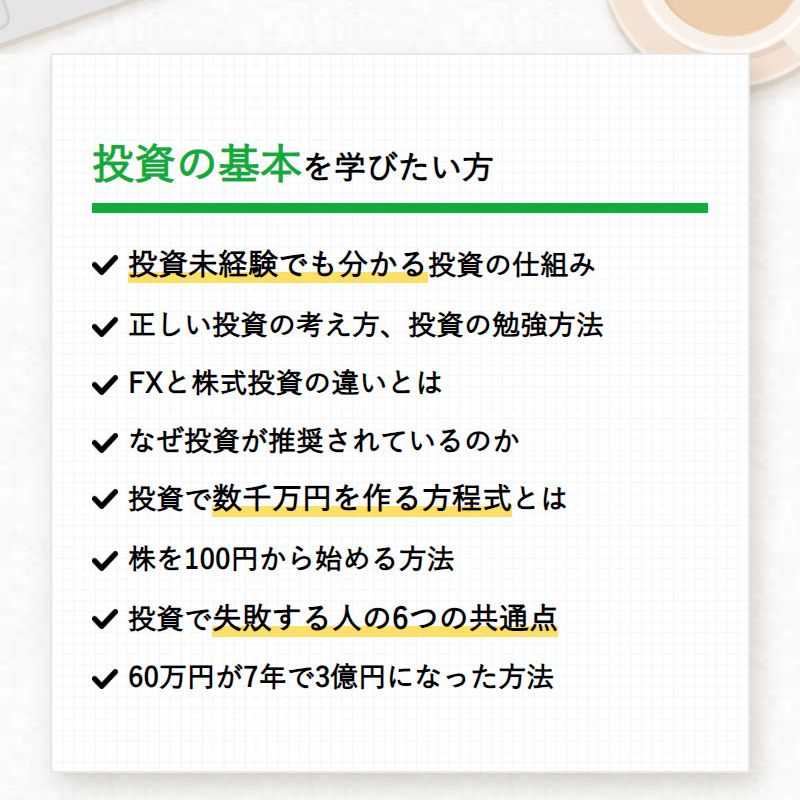 従来の投資手法は過去のものです。私の新しい投資手法を無料で学びましょう!